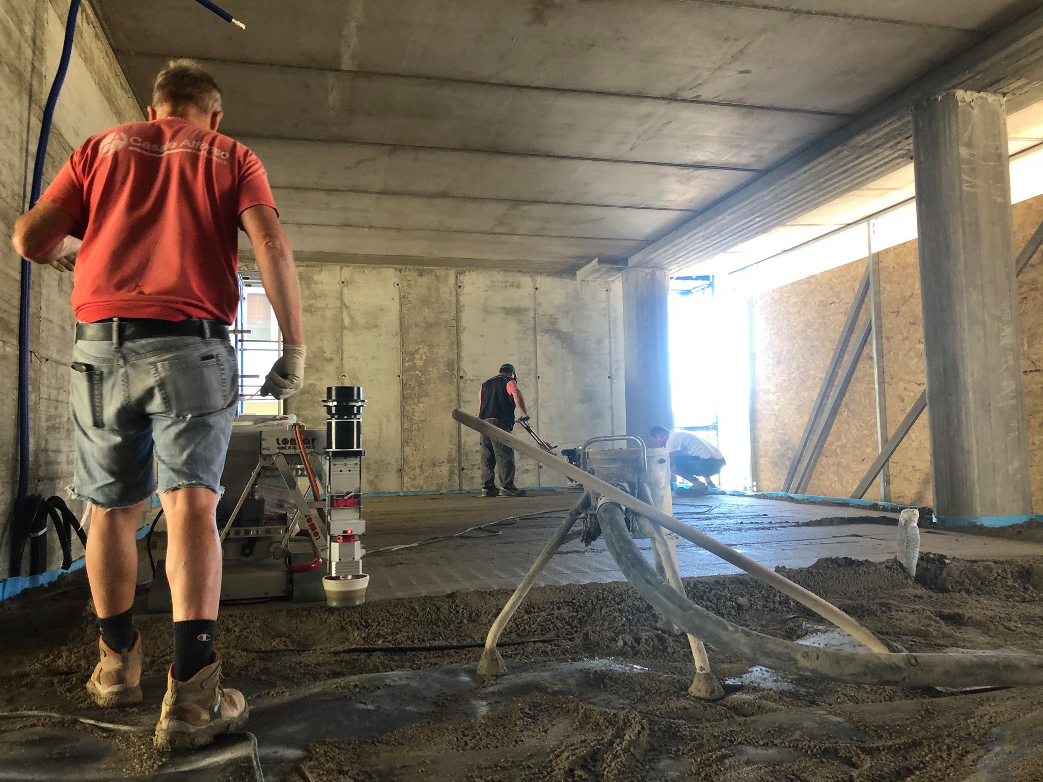 Di recente CASALE SRL si è dotata di un impianto semovente automatico per la produzione di massetti e sottofondi. L’impianto è una centrale di miscelazione pompaggio automatico che produce al cantiere la quantità di sabbia e cemento necessarie all’uso, eliminando gli sprechi e garantendo velocità e pulizia nel cantiere.