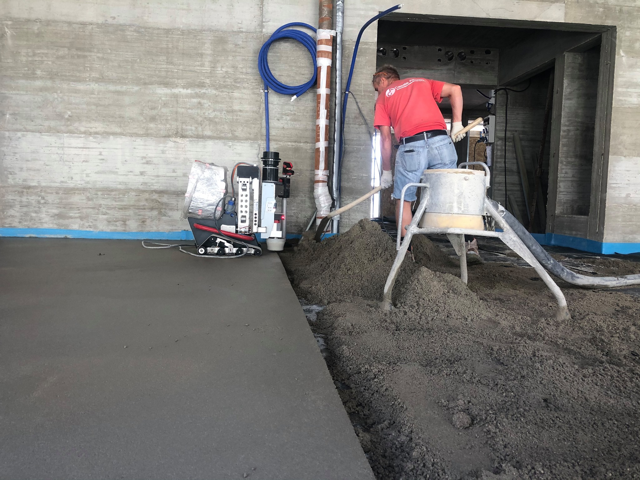 Si tratta di una macchina per la realizzazione di tutti i tipi di massetto realizzati con impasti semiumidi. È un Robot che una volta impostato si muove in maniera completamente autonoma su tutta la superficie da staggiare. Si ottengono così vantaggi notevoli in termini di tempo, di fatica per l’operatore e in termini di ripetibilità di piano poiché abbiamo un controllo di quota di 500 volte al secondo, ovvero, un controllo continuo di piano.